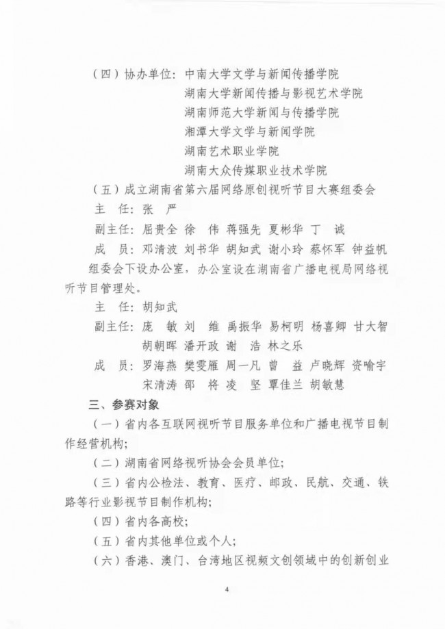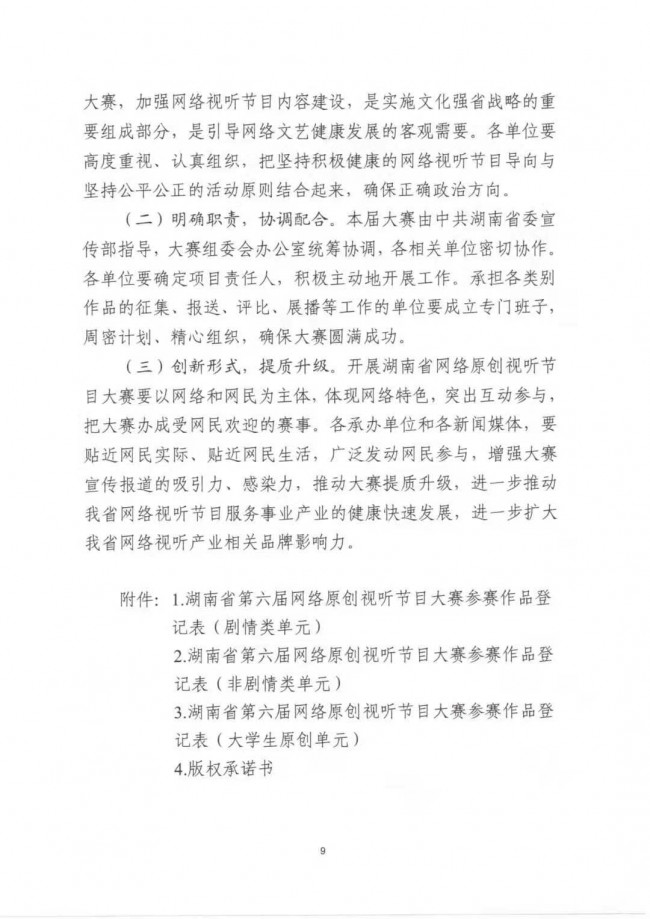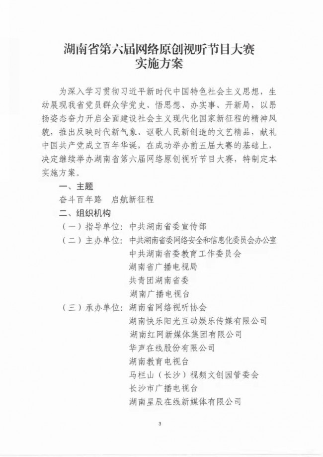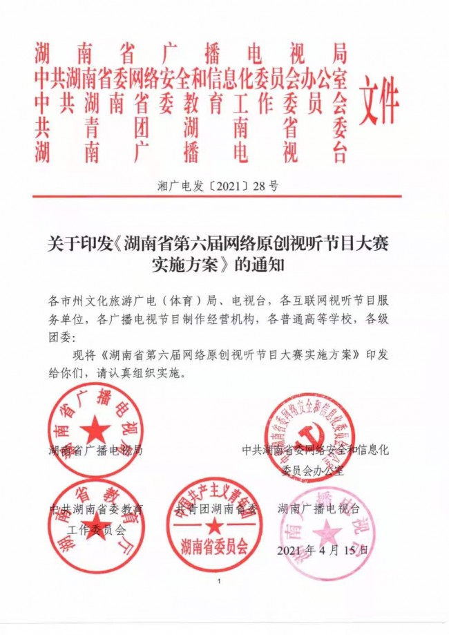 關(guān)于印發(fā)《湖南省第六屆網(wǎng)絡(luò)原創(chuàng)視聽節(jié)目大賽實施方案》的通知