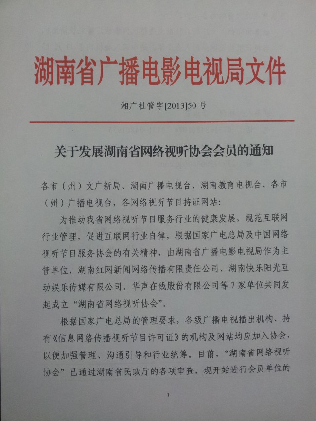 關(guān)于發(fā)展湖南省網(wǎng)絡(luò)視聽(tīng)協(xié)會(huì)會(huì)員的通知