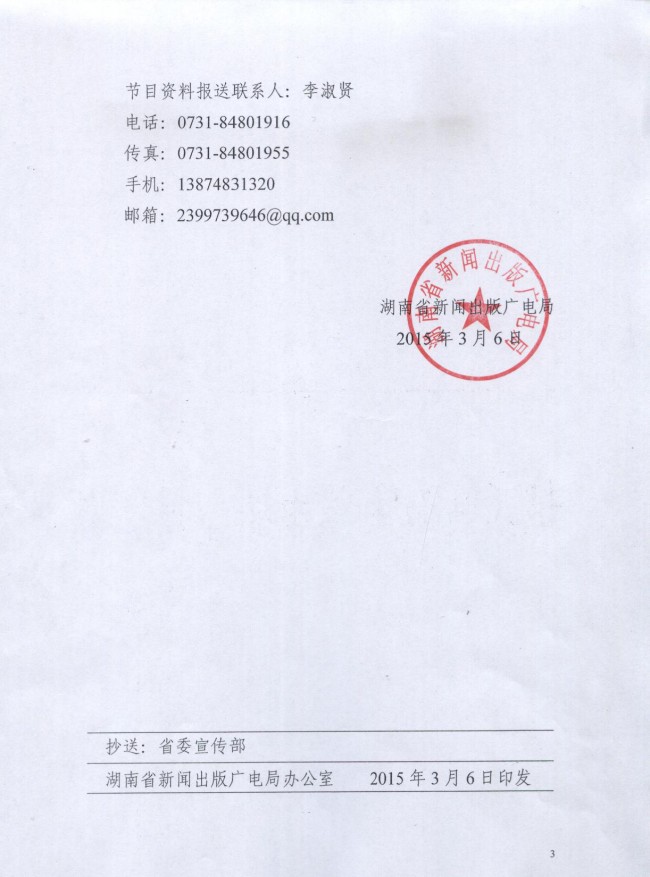 地址:湖南省長(zhǎng)沙市金鷹影視文化城 郵編410003 辦公電話:0731-84801916 傳真:0731-84801955 郵箱: