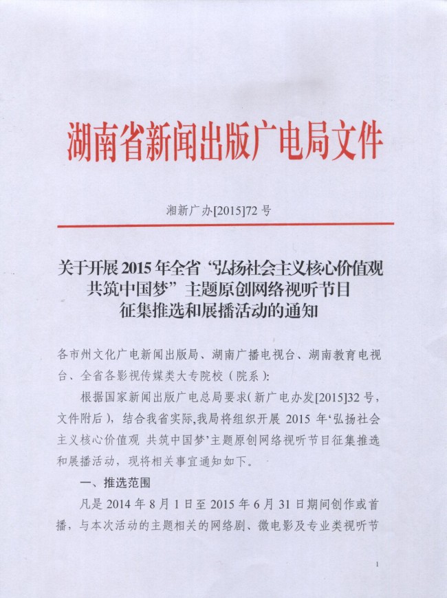 2015“弘揚(yáng)社會(huì)主義核心價(jià)值觀 共筑中國(guó)夢(mèng)”主題原創(chuàng)網(wǎng)絡(luò)視聽(tīng)節(jié)目推選活動(dòng)(文件下載)