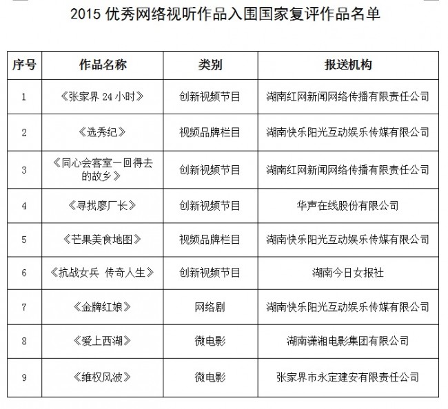 2015優(yōu)秀網(wǎng)絡(luò)視聽作品入圍國家復(fù)評作品名單