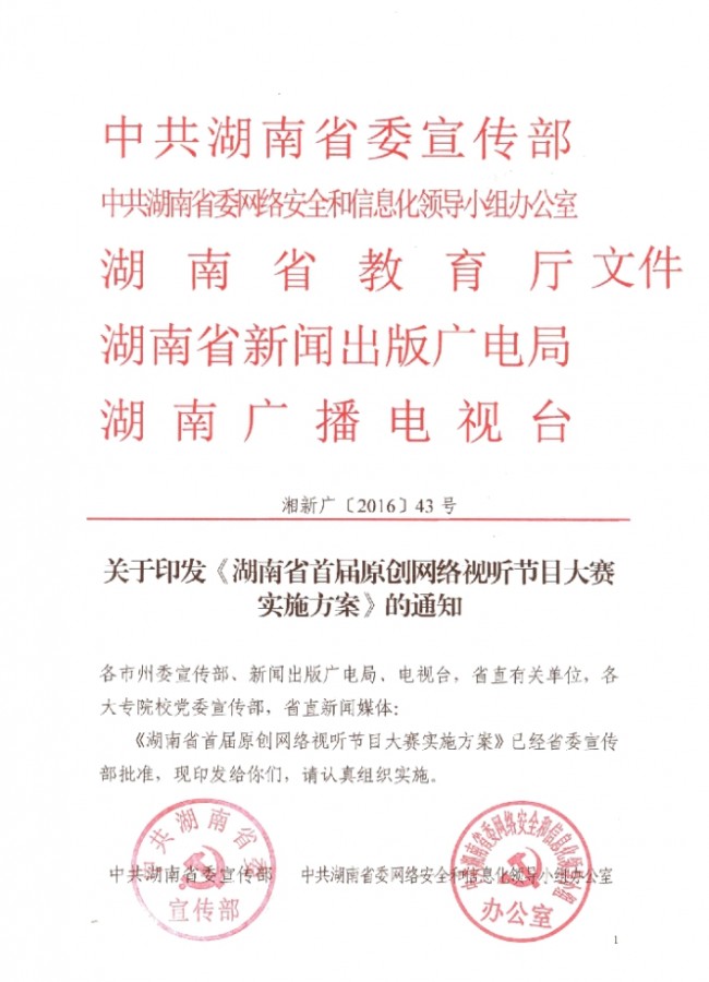 關(guān)于印發(fā)《湖南省首屆原創(chuàng)網(wǎng)絡(luò)視聽節(jié)目大賽實施方案》的通知