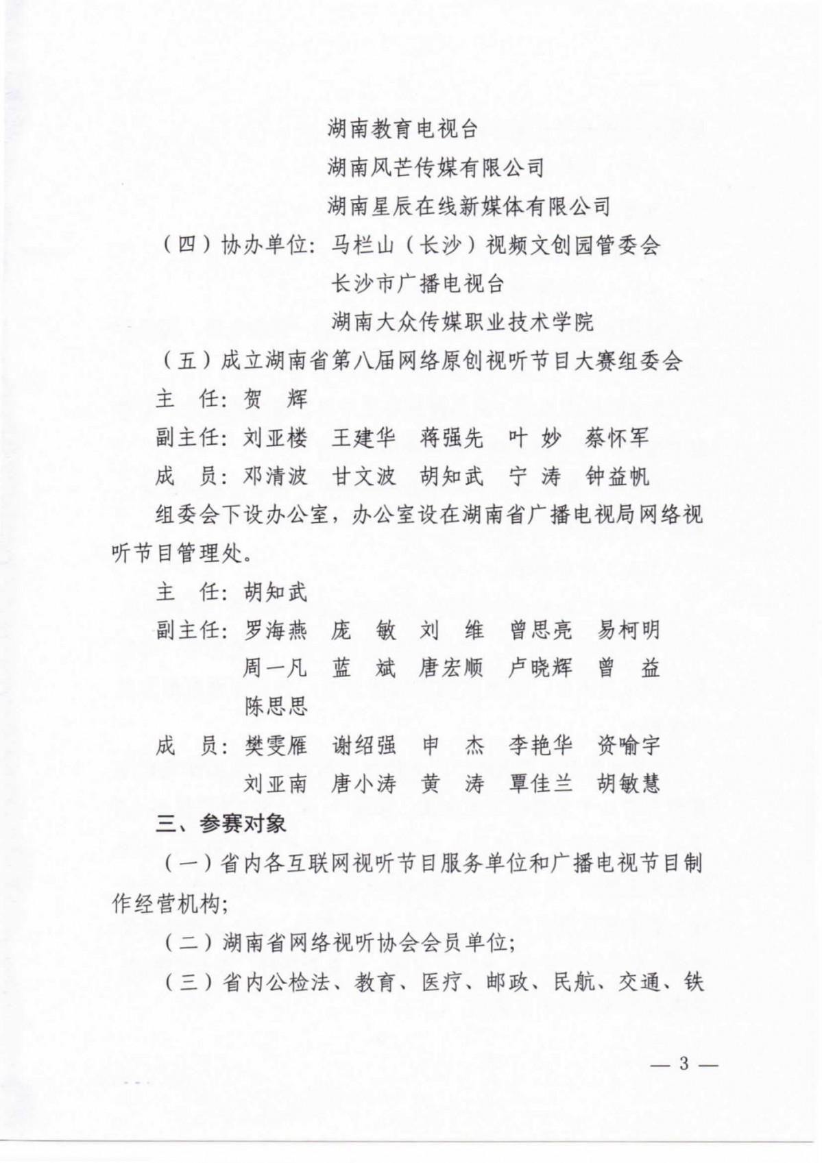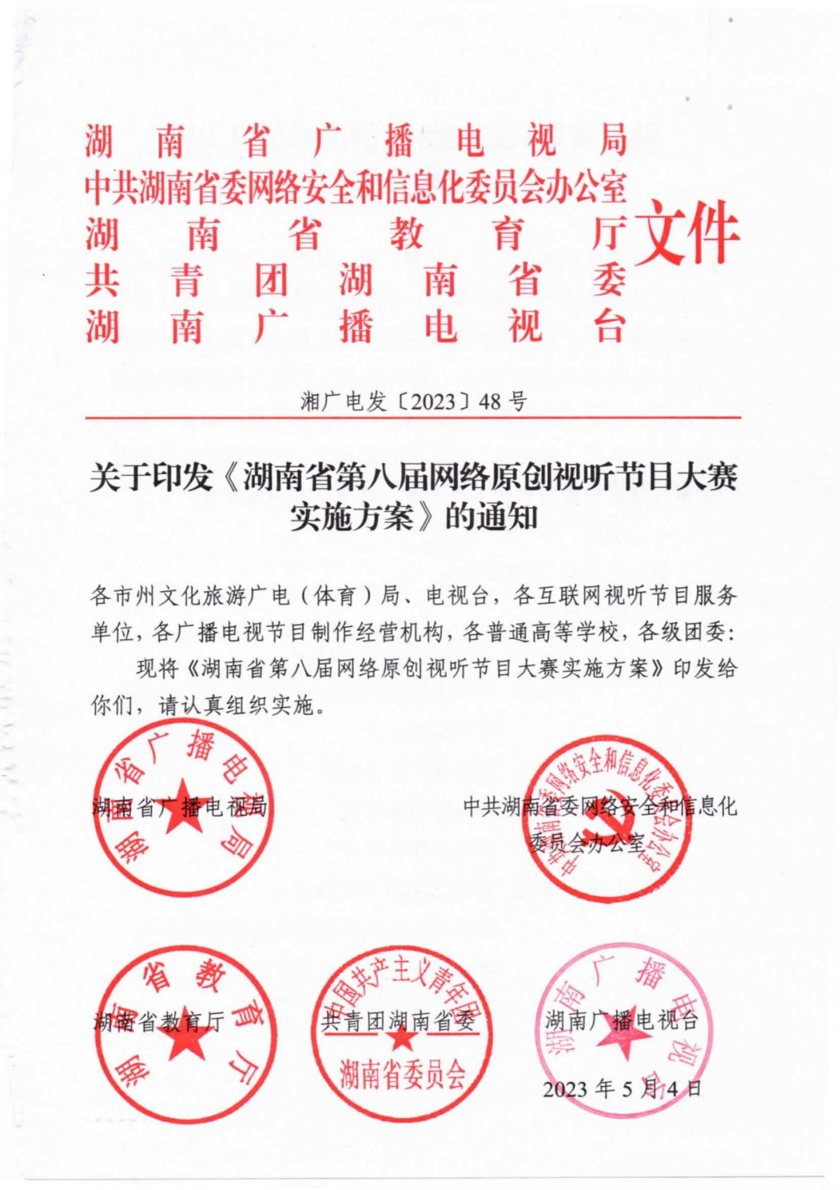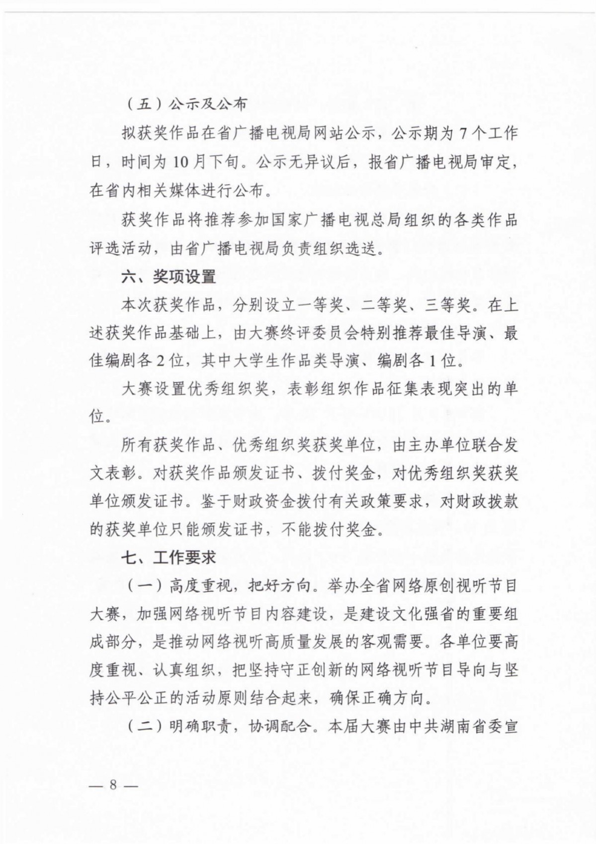 關(guān)于印發(fā)《湖南省第八屆網(wǎng)絡(luò)原創(chuàng)視聽大賽實(shí)施方案》的通知