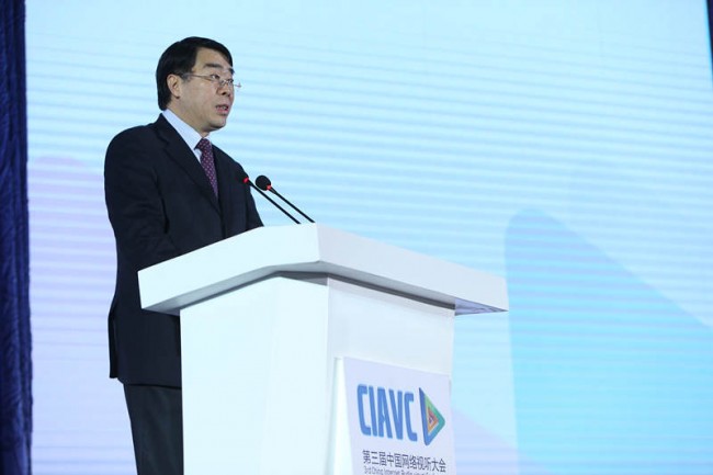 國(guó)家新聞出版廣電總局副局長(zhǎng)田進(jìn)做主旨演講。(央視網(wǎng) 馬也攝影)
