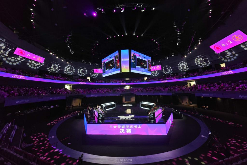 2023年5月21日,在杭州電競中心拍攝的“韻味杭州”電子競技全國邀請賽王者榮耀亞運版決賽現(xiàn)場。新華社記者 黃宗治/攝