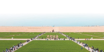 百畝麥田景觀廣場,綠麥如茵,人流如織。