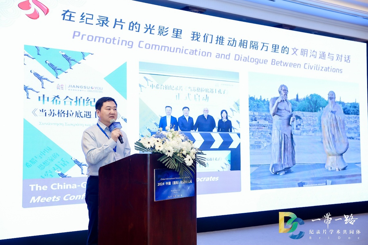 江蘇省?播電視總臺黨委書記、臺長葛萊展示了江蘇廣電總臺的國際傳播紀錄片作品,強調(diào)中國紀錄片創(chuàng)作需要堅持“國際視野、國家高度”,同時要推進中國紀錄片國際化、分眾化傳播,努力讓可信可愛可敬的中國形象更加可感可觸可親。