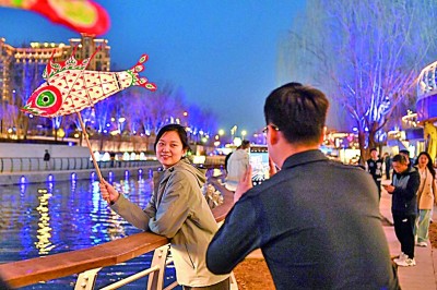 游客在北京朝陽區(qū)亮馬河畔觀光休閑。新華社發(fā)