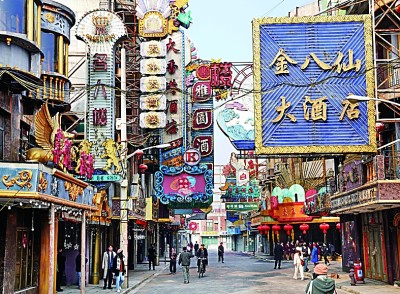 游客在電視劇《繁花》中黃河路拍攝地上海影視樂園參觀游玩。新華社發(fā)