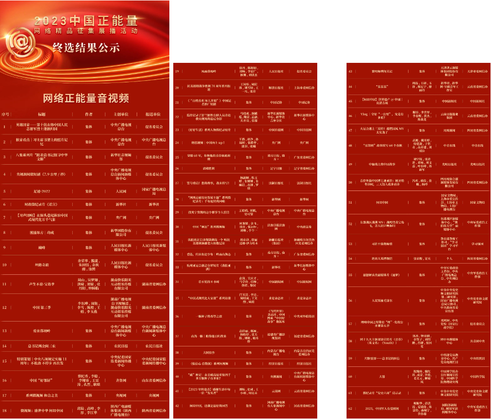 2023中國正能量網(wǎng)絡(luò)音視頻獲獎名單