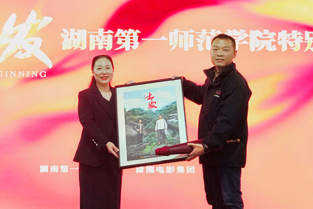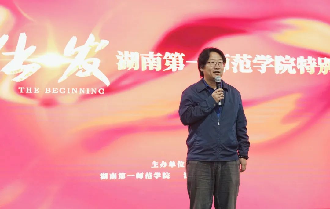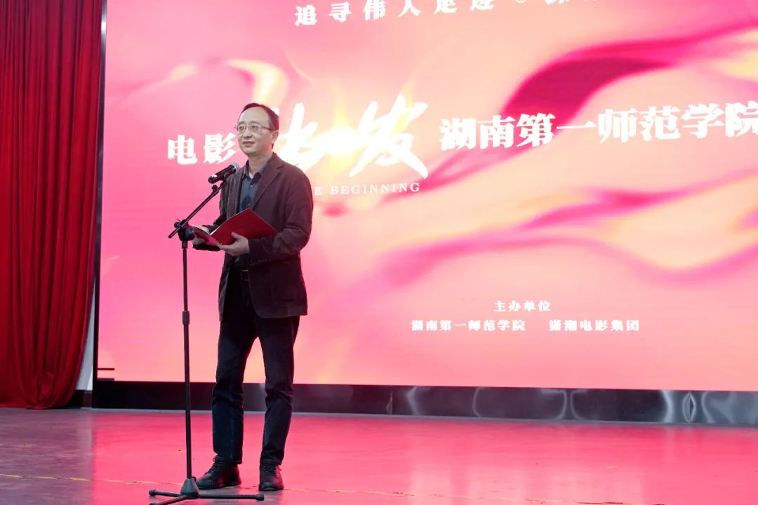 活動(dòng)現(xiàn)場(chǎng),湖南第一師范學(xué)院黨委委員、副校長(zhǎng)周發(fā)明在致辭中表示,電影《出發(fā)》是對(duì)歷史的致敬和對(duì)未來(lái)的啟迪。湖南一師作為毛主席母校,作為青年毛澤東“出發(fā)”的地方,能夠見(jiàn)證和參與本片從開(kāi)機(jī)到上映具有特殊意義。110年前,青年毛澤東來(lái)到第一師范求學(xué)期間,他的實(shí)地調(diào)查和深入民眾的游學(xué)實(shí)踐,展現(xiàn)了他對(duì)知識(shí)的渴求和對(duì)社會(huì)的深刻理解。其“身無(wú)分文,心憂天下”的愛(ài)國(guó)精神和千里游學(xué)求真知的奮斗精神也成為一筆珍貴的精神財(cái)富。