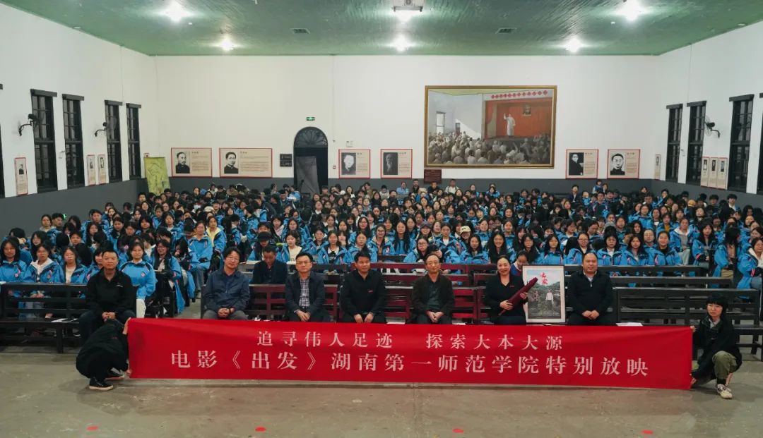湖南第一師范學(xué)院素有“千年學(xué)府,百年師范”的美譽(yù),不僅是毛澤東思想的萌芽地,也是中國(guó)共產(chǎn)主義運(yùn)動(dòng)和新民主主義革命的重要策源地。3月18日下午,習(xí)近平總書(shū)記在考察湖南第一師范時(shí)囑托:“國(guó)家要強(qiáng)大,必須辦好教育。一師是開(kāi)展愛(ài)國(guó)主義教育、傳承紅色基因的好地方,要把這一紅色資源保護(hù)運(yùn)用好。學(xué)校要立德樹(shù)人,教師要當(dāng)好大先生,不僅要注重提高學(xué)生知識(shí)文化素養(yǎng),更要上好思政課,教育引導(dǎo)學(xué)生明德知恥,樹(shù)牢社會(huì)主義核心價(jià)值觀,立報(bào)國(guó)強(qiáng)國(guó)大志向,努力成為堪當(dāng)強(qiáng)國(guó)建設(shè)、民族復(fù)興大任的棟梁之材。”近年來(lái),學(xué)院充分利用其深厚的紅色文化底蘊(yùn),為電影《出發(fā)》的拍攝工作提供全方位的支持與協(xié)助。本次特別放映活動(dòng),旨在牢記囑托,堅(jiān)守立德樹(shù)人的根本使命,通過(guò)生動(dòng)的“電影思政課”形式,傳承并弘揚(yáng)紅色傳統(tǒng),培育深厚的家國(guó)情懷,為青年學(xué)子們搭建了一個(gè)深入了解國(guó)家歷史、學(xué)習(xí)先輩們寶貴精神的有效平臺(tái)。