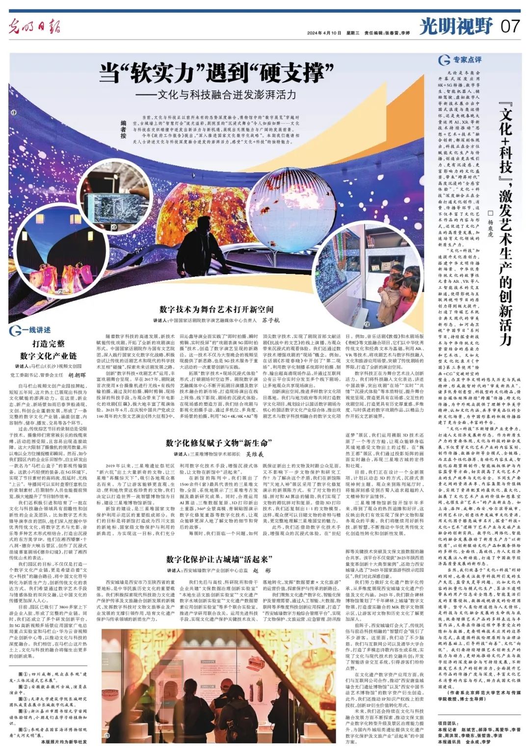 我們園區(qū)的目標(biāo),不僅僅是打造一個數(shù)字文化產(chǎn)業(yè)鏈,更是希望沿著“文化+科技”的融合路徑,將中國文化符號轉(zhuǎn)化為新質(zhì)生產(chǎn)力,創(chuàng)新傳統(tǒng)文化的表達(dá)方式。我們希望通過數(shù)字藝術(shù)手段與情感體驗的雙向交融,讓中國文化的傳播更加深入人心。