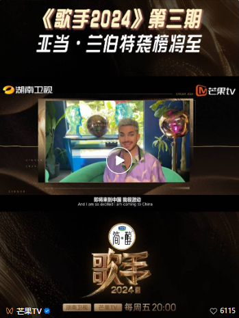 有人說為什么一檔音綜,能牽動社會大眾的情緒?從舞美、選曲、音響配置再到每一句文案,每一位歌者的用心演繹,以及節(jié)目背后所傳遞的文化厚度,當(dāng)你在《歌手2024》看到的每一個細(xì)節(jié)都如此極致與真摯時(shí),大眾怎會不被它的全情付出而震撼?《歌手》的音樂正在繼續(xù),下周五晚8點(diǎn),全球流行音樂頂尖歌手亞當(dāng)·蘭伯特將向《歌手2024》的在線歌手發(fā)起襲榜挑戰(zhàn),以樂相逢,以樂相迎,精彩敬請期待。
