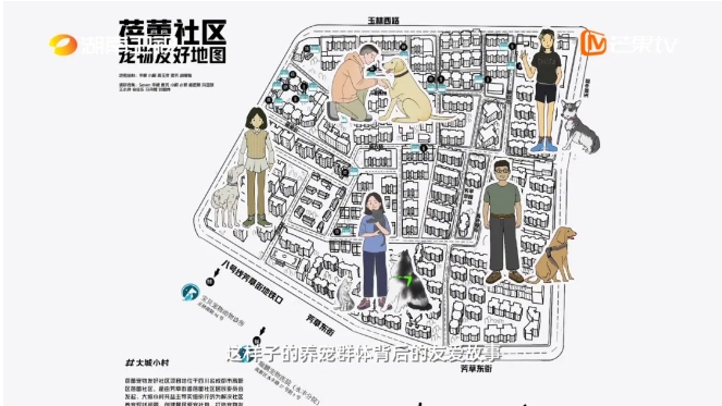 在蓓蕾社區(qū),“路上狗屎多”、“遛狗不牽繩”是非養(yǎng)寵居民最大的困擾。為破解這一難題,楊迎琦帶著團隊結(jié)識“養(yǎng)寵骨干”,建立養(yǎng)寵社群,并制定社區(qū)寵物友好公約來規(guī)范約束居民與寵物的行為。他們還繪制了蓓蕾寵物友好地圖,記錄下每一個寵物可以遛彎兒的點,確保每個居民都能在一個和諧的環(huán)境中生活。