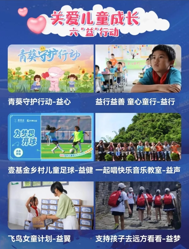 芒果TV少兒頻道攜手芒果公益平臺(tái),發(fā)起的六“益”行動(dòng)——益心、益行、益健、益聲、益翼、益夢(mèng),聚焦兒童公益項(xiàng)目,關(guān)愛(ài)兒童成長(zhǎng)。