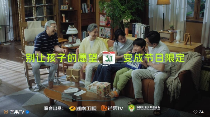 芒果六“益”溫暖陪伴持續(xù)有愛(ài),6月1日湖南衛(wèi)視與中國(guó)兒童少年基金會(huì)聯(lián)名推出《最好的禮物》公益片,呼吁社會(huì)關(guān)注未成年人的心理健康和成長(zhǎng)壓力。