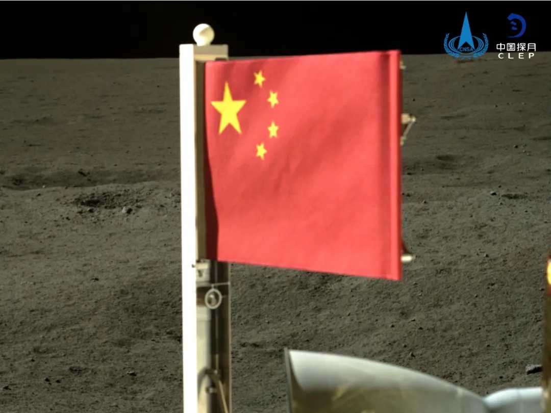 還有這鮮艷的一抹紅——表取完成后,嫦娥六號著陸器攜帶的五星紅旗在月球背面成功展開。這是我國首次在月球背面獨(dú)立動(dòng)態(tài)展示國旗。