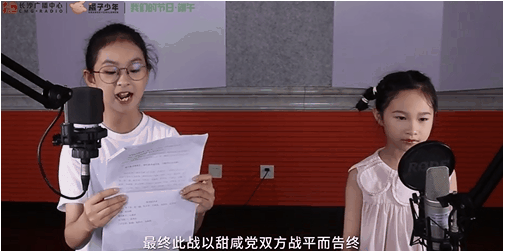 《屈原投江》的故事由小學(xué)生戚辰澤和張芷萌共同演繹,屈原的演播者戚辰澤今年只有11歲,文言文演繹別有風(fēng)味。講述者張芷萌今年也只小學(xué)五年級(jí),演繹風(fēng)格端莊大氣,兩人的演繹,可謂可圈可點(diǎn),形象地描繪了屈原忠貞愛國(guó)、心系百姓、潔身自好的精神品質(zhì)。