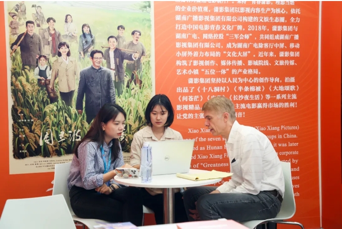 在瀟湘電影集團展臺,《出發(fā)》《深海之光》《周立波回清溪》《堡壘》《她比煙花燦爛》等五部力作,及其它產(chǎn)業(yè)、項目的集中亮相,吸引了國內(nèi)外影視企業(yè)和投資者的廣泛關(guān)注。期間,湖南廣播影視集團(湖南廣播電視臺)黨委委員、副總經(jīng)理,瀟湘電影集團黨委書記、董事長谷良來到展臺詢問了解了影展情況,并與伊朗青年電影協(xié)會相關(guān)負責人就電影展映、電影合拍、電影制作培訓等事宜進行了深入交流。