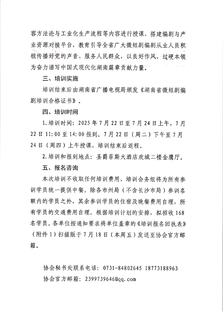 關(guān)于舉辦2025年湖南省微短劇編劇培訓(xùn)班的通知