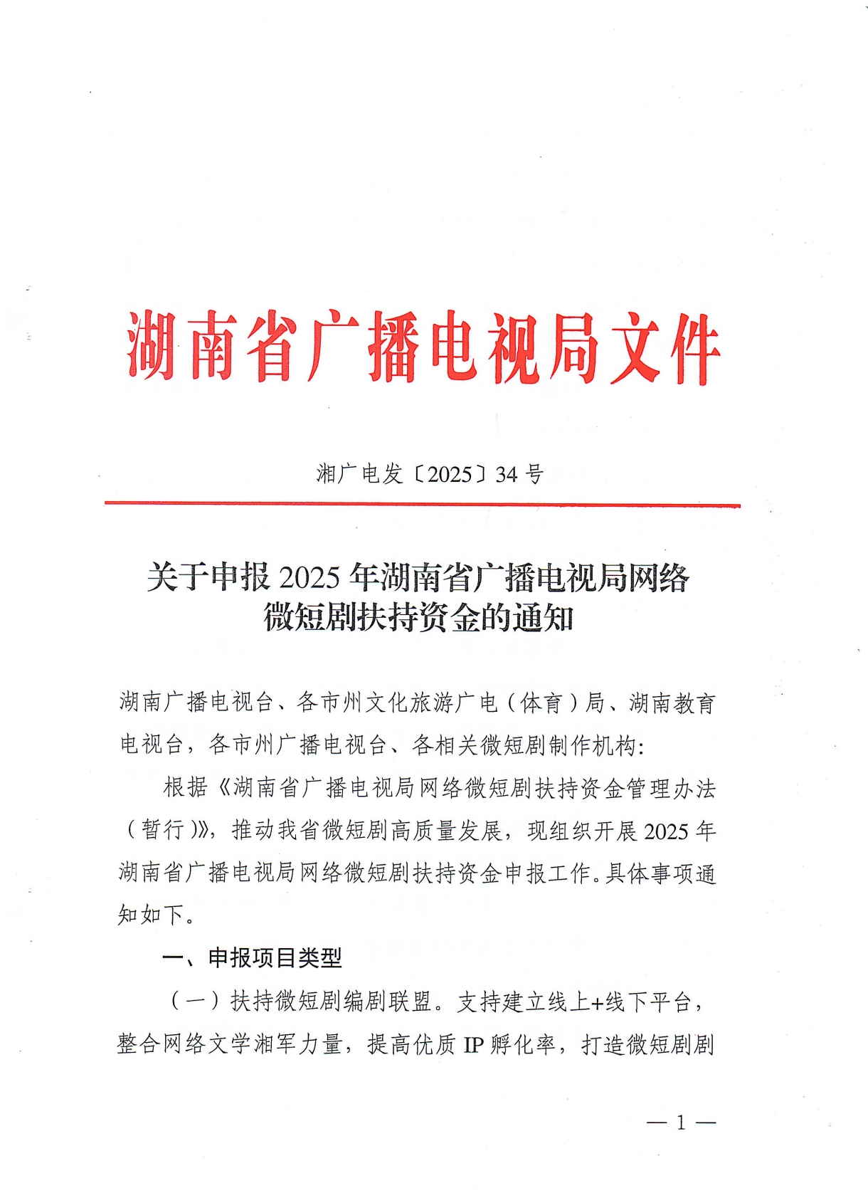 接省局通知,依據(jù)《湖南省廣播電視局網(wǎng)絡微短劇扶持資金管理辦法(暫行)》,為推動我省微短劇的高質量發(fā)展,將組織開展2025年湖南省廣播電視局網(wǎng)絡微短劇扶持資金申報工作(第二批)。省網(wǎng)絡視聽協(xié)會積極鼓勵各會員單位踴躍參與扶持資金的申報。同時,為充分發(fā)揮協(xié)會的服務職能,協(xié)會將向會員單位提供扶持資金申報相關的咨詢及填報輔導服務,以助力更多會員單位在規(guī)定時間內順利申報。