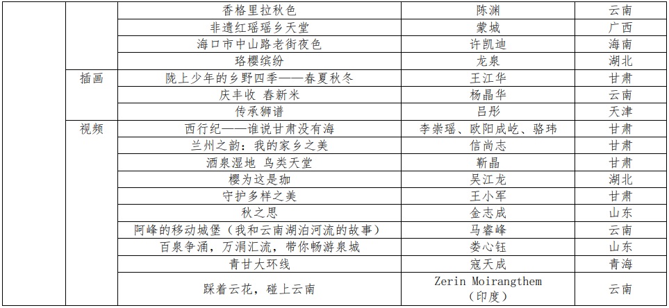 個(gè)人組最佳案例包括張爭(zhēng)鳴的《喀斯特山水田園》(最佳攝影)、劉波的《如夢(mèng)敦煌》(最佳插畫)、曲媛的《聽》(最佳視頻)。