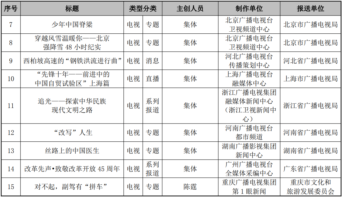 廣播電視播出機構(gòu)要認真學(xué)習(xí)這些優(yōu)秀新聞作品的好經(jīng)驗、好做法,加強和改進新聞宣傳,提高新聞節(jié)目質(zhì)量和水平,進一步提升傳播力、引導(dǎo)力、影響力、公信力。