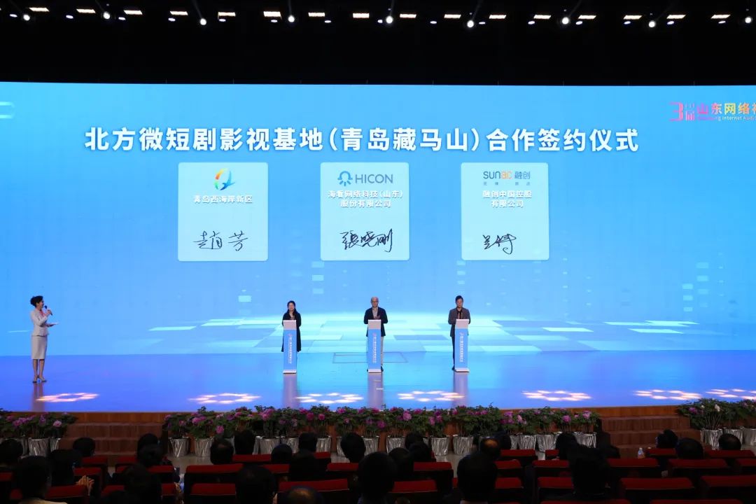 4月18日,青島西海岸新區(qū)、融創(chuàng)中國(guó)、海看網(wǎng)絡(luò)科技(山東)股份有限公司在第三屆山東網(wǎng)絡(luò)視聽(tīng)大會(huì)上,共同簽署合作協(xié)議,共建北方微短劇影視基地(青島藏馬山)項(xiàng)目。