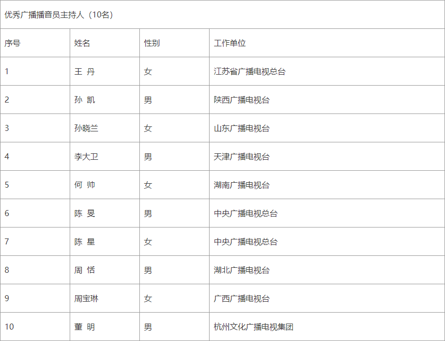 第2屆中國播音主持“金聲獎”獲獎名單已經(jīng)國家廣播電視總局批準,現(xiàn)予公布。