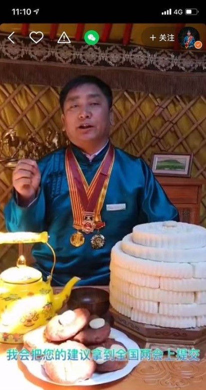 圖為全國人大代表吳云波在快手平臺上聽取基層意見