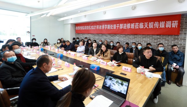 11月26日上午,廣電總局黨校2021年秋季學(xué)期處級干部進(jìn)修班赴天娛傳媒北京公司考察調(diào)研并座談。集團(tuán)公司(臺)黨委委員、副總經(jīng)理、副臺長馮錦出席。芒果超媒、芒果TV、天娛傳媒有關(guān)負(fù)責(zé)人參加座談。
