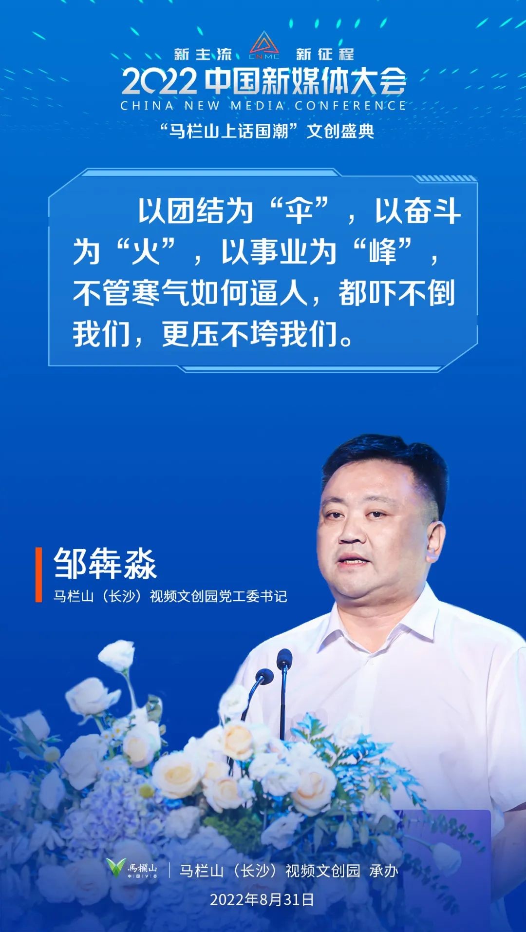 大家好。歡迎大家來到馬欄山。2020年9月17日,金秋如陽春,這一天是馬欄山最溫暖、最明媚的一天。習(xí)近平總書記親臨考察馬欄山視頻文創(chuàng)園,面對(duì)一張張青春洋溢的面龐,總書記殷殷寄語:“文化和科技融合,既催生了新的文化業(yè)態(tài)、延伸了文化產(chǎn)業(yè)鏈,又集聚了大量創(chuàng)新人才,是朝陽產(chǎn)業(yè),大有前途”。臨別時(shí),總書記又聲聲叮嚀:“一定要牢牢把握正確導(dǎo)向,堅(jiān)持守正創(chuàng)新,確保文化產(chǎn)業(yè)持續(xù)健康發(fā)展”。牢記總書記囑托,堅(jiān)持守正創(chuàng)新,發(fā)展文化產(chǎn)業(yè),是馬欄山最光榮、最神圣的使命任務(wù)。湖南省委省政府,長(zhǎng)沙市委市政府高度重視馬欄山發(fā)展,將馬欄山作為實(shí)施強(qiáng)省會(huì)戰(zhàn)略的重要平臺(tái),提出打造“具有全球影響力的數(shù)字視頻產(chǎn)業(yè)鏈基地和媒體融合新地標(biāo)”的宏偉目標(biāo),集全省之力,在政策、資金、項(xiàng)目上傾力支持馬欄山高質(zhì)量發(fā)展。中國新媒體大會(huì)是全國新媒體盛會(huì),引導(dǎo)新興媒體發(fā)展方向,推動(dòng)傳統(tǒng)媒體和新興媒體守正創(chuàng)新,融合發(fā)展,共同構(gòu)建全媒體傳播體系。今年是中國新媒體大會(huì)第三年在長(zhǎng)沙、在馬欄山舉行。三次大會(huì)的勝利舉辦,為馬欄山搭建了廣闊的展示舞臺(tái),提升了園區(qū)的知名度和產(chǎn)業(yè)吸引力,一大批優(yōu)質(zhì)企業(yè)競(jìng)相落戶,為園區(qū)發(fā)展增添了更為強(qiáng)勁的動(dòng)力。在此,我們深表感謝,感謝中央網(wǎng)信辦、國家廣電總局、中國記協(xié)的厚愛關(guān)心;我們深懷感恩,必將踔厲奮發(fā),篤行不怠,以更快的速度、更好的發(fā)展,回報(bào)各級(jí)領(lǐng)導(dǎo)的殷切期望。借此機(jī)會(huì),向大家匯報(bào)三點(diǎn)思考:第一,建設(shè)“具有全球影響力的數(shù)字視頻產(chǎn)業(yè)鏈基地和媒體融合新地標(biāo)”,馬欄山有什么?從硬件看,馬欄山位于文化名城長(zhǎng)沙市核心主城區(qū),區(qū)位條件極佳,距機(jī)場(chǎng)、高鐵站均在25分鐘車程之內(nèi)。我們秉承“園區(qū)、社區(qū)、校區(qū)、城區(qū)、景區(qū)”五區(qū)融合的理念,打造最美的瀏陽河第八道灣。新建5A級(jí)寫字樓約97萬平方米,全國一流的綜藝演播廳3萬平方米。今年在全國疫情多點(diǎn)散發(fā)的情況下,我們通過織密防控網(wǎng)絡(luò),實(shí)施網(wǎng)格管理,實(shí)現(xiàn)了《聲生不息•港樂季》《披荊斬棘第二季》等一批優(yōu)秀綜藝節(jié)目的安全錄制。聯(lián)合國家電網(wǎng),建設(shè)高標(biāo)準(zhǔn)IDC機(jī)房,做強(qiáng)“電力”“算力”支撐。建設(shè)2000余套人才公寓,現(xiàn)有998套投放市場(chǎng)。引進(jìn)長(zhǎng)沙市最好的教育資源,竭力為人才落戶提供“一站式”服務(wù)。建成1476畝的綠地公園、濱河步道和綠色廊道,點(diǎn)亮每個(gè)創(chuàng)意瞬間,標(biāo)準(zhǔn)化體育場(chǎng)館讓“文創(chuàng)達(dá)人”化身“運(yùn)動(dòng)健將”。從軟件看,總書記點(diǎn)贊“湖南文創(chuàng)很有特色”。湖南文創(chuàng)高地在馬欄山,文創(chuàng)發(fā)展也在馬欄山。比如,作為廣電湘軍代表的湖南廣播電視臺(tái),穩(wěn)居省級(jí)廣電第一,入選中國500最具價(jià)值品牌;作為出版湘軍代表的中南傳媒和湖南出版,均為全球出版業(yè)十強(qiáng)企業(yè),湖湘網(wǎng)絡(luò)作家名列全國前茅;作為動(dòng)漫湘軍代表的金鷹卡通,是同類頻道中覆蓋范圍最廣、收視人口最多的全國性親子平臺(tái);作為影視湘軍代表的瀟影集團(tuán),先后15次獲華表獎(jiǎng),知了青年公司制作的系列反映中華優(yōu)秀傳統(tǒng)文化的紀(jì)錄片,點(diǎn)擊量數(shù)億次,傳播海內(nèi)外。新引進(jìn)華為、字節(jié)跳動(dòng)等企業(yè)超3000家,已形成內(nèi)容制作、存儲(chǔ)、播發(fā)、交易和監(jiān)管等全鏈條“生態(tài)圈”。第二,建設(shè)“具有全球影響力的數(shù)字視頻產(chǎn)業(yè)鏈基地和媒體融合新地標(biāo)”,馬欄山要什么?湖南省委常委、省委宣傳部楊浩東部長(zhǎng)指出,馬欄山要努力將園區(qū)視頻文創(chuàng)產(chǎn)業(yè)做到“規(guī)模最大、種類最全、質(zhì)量最高、成本最低、速度最快”。這是我們踐行強(qiáng)省會(huì)戰(zhàn)略,實(shí)現(xiàn)高質(zhì)量發(fā)展的具體路徑。在此,我們誠摯希望與全國新媒體企業(yè)、影視企業(yè)、科技企業(yè)等在以下五個(gè)方面尋求合作,共創(chuàng)共享共贏。一是內(nèi)容制作方面。謀求在電影電視、綜藝節(jié)目等內(nèi)容產(chǎn)業(yè)領(lǐng)域合作,共同探索和開發(fā)版權(quán)內(nèi)容的最大價(jià)值,引導(dǎo)內(nèi)容制作企業(yè)守正創(chuàng)新,推出一批精品力作。二是后期制作方面。加大后期制作領(lǐng)域投入力度,加速影視工業(yè)人才培養(yǎng),解決影視工業(yè)軟件國產(chǎn)化問題,整合重構(gòu)制作流程,打造中國技術(shù)、形成中國標(biāo)準(zhǔn)、講好中國故事。三是虛擬現(xiàn)實(shí)方面。搶占元宇宙“新賽道”,加快影視虛擬化制作,推動(dòng)視頻技術(shù)多場(chǎng)景應(yīng)用,推進(jìn)數(shù)字孿生與實(shí)體經(jīng)濟(jì)結(jié)合,催生新的業