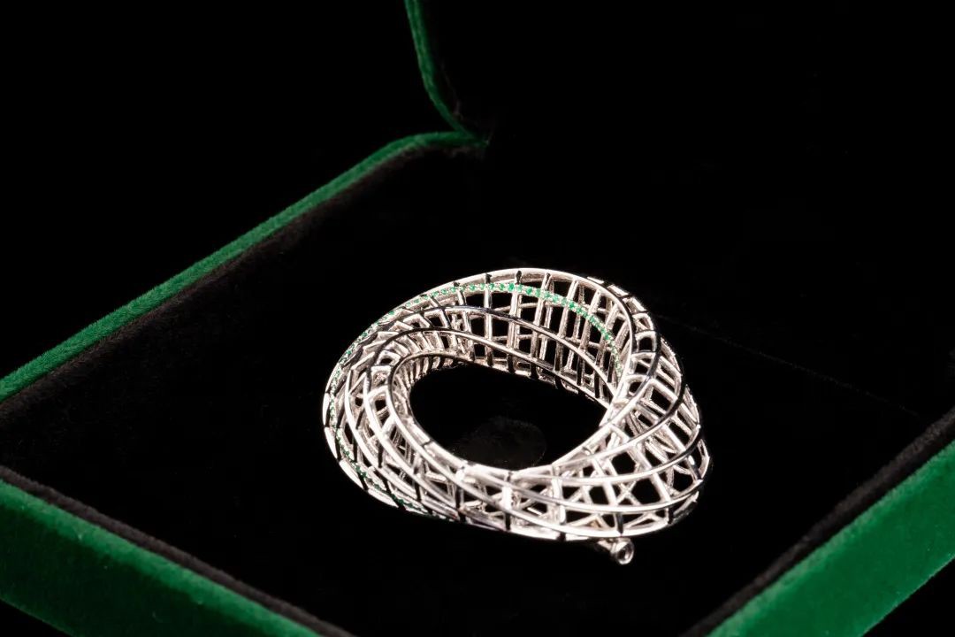 活動現(xiàn)場還為2022年度的雙平臺領(lǐng)軍人物送上了特別定制的獎戒和胸針,其造型來自于前坪廣場上的“生生不息”雙平臺紀(jì)念燈光裝置,主材質(zhì)為白金,分別鑲嵌以紅寶石、藍(lán)寶石和祖母綠,寓意著雙平臺領(lǐng)軍人物將繼續(xù)作為標(biāo)桿,帶領(lǐng)芒果打開無限可能,希望生生不息!