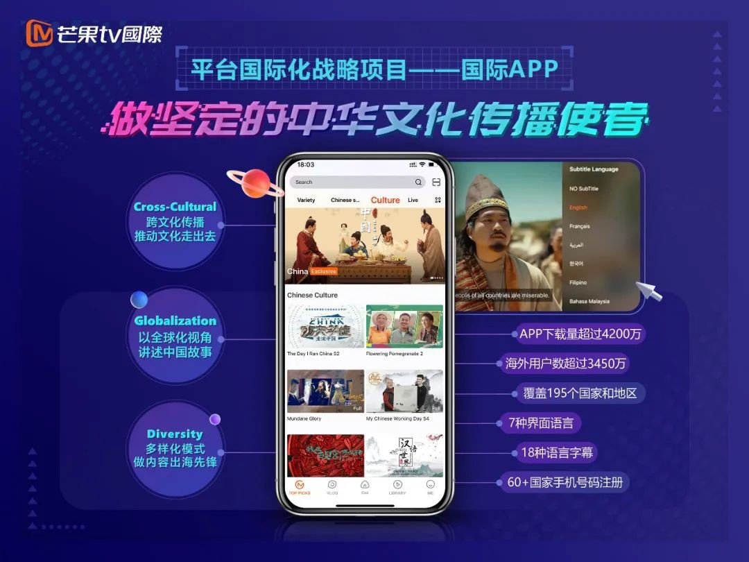近年來,芒果TV深入貫徹習(xí)近平總書記關(guān)于加強(qiáng)和改進(jìn)國際傳播工作的重要指示精神,發(fā)揮國際影響力,加快打造立體化、多維度“國際傳播1+4模式”,積極壯大自有、自主、自控的芒果TV國際APP平臺,同時以版權(quán)發(fā)行、內(nèi)容共創(chuàng)、戰(zhàn)略合作、渠道拓展為四大抓手,不斷強(qiáng)化模式創(chuàng)新、內(nèi)容創(chuàng)新、渠道創(chuàng)新,爭當(dāng)文化出海排頭兵。芒果TV國際APP平臺于2020年納入“中宣部絲綢之路影視橋工程”,截至目前,平臺下載量1.3億,通過精細(xì)化運(yùn)營6種界面語言、17種字幕語言,傳播影響覆蓋全球195個國家和地區(qū),講好中國故事、傳播好中國聲音;每年發(fā)行上百部精品到海外,并積極與越南、老撾、中東、馬來西亞、新加坡等國家和地區(qū)展開戰(zhàn)略合作,擴(kuò)大海外合作朋友圈。