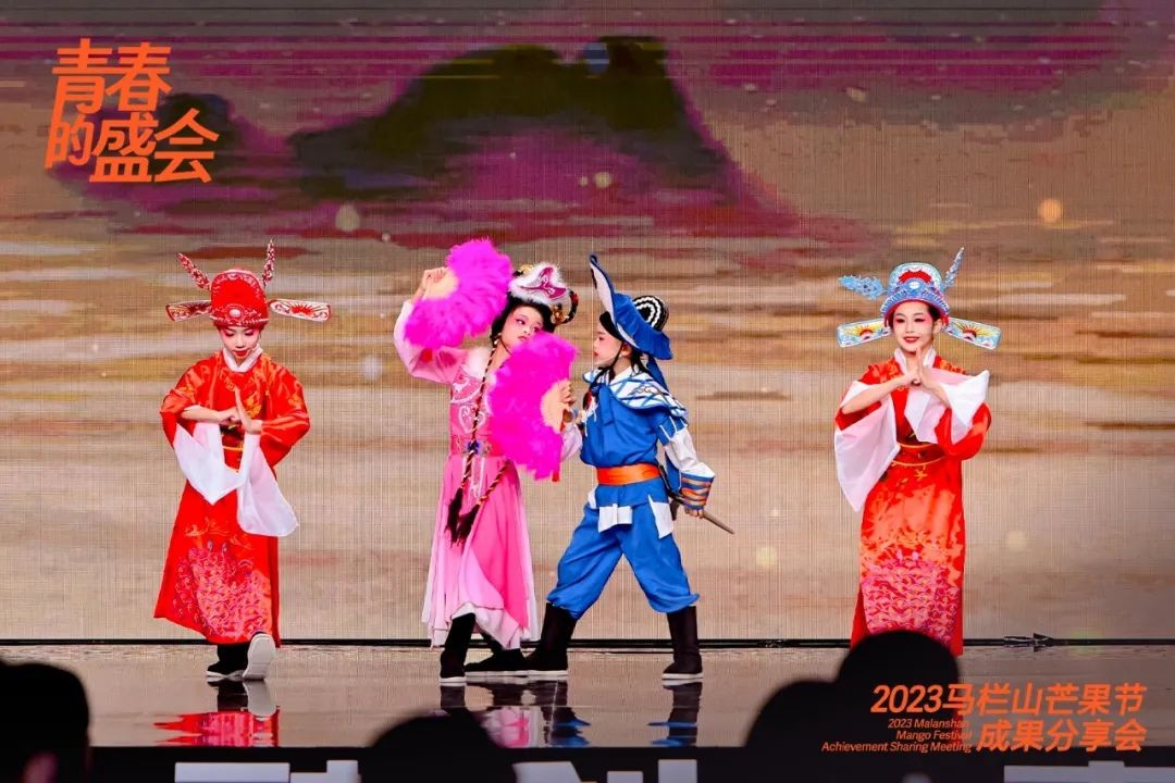 馬欄山芒果節(jié)成果分享會(huì)現(xiàn)場(chǎng)孩子們表演花鼓戲《劉??抽浴?/span>