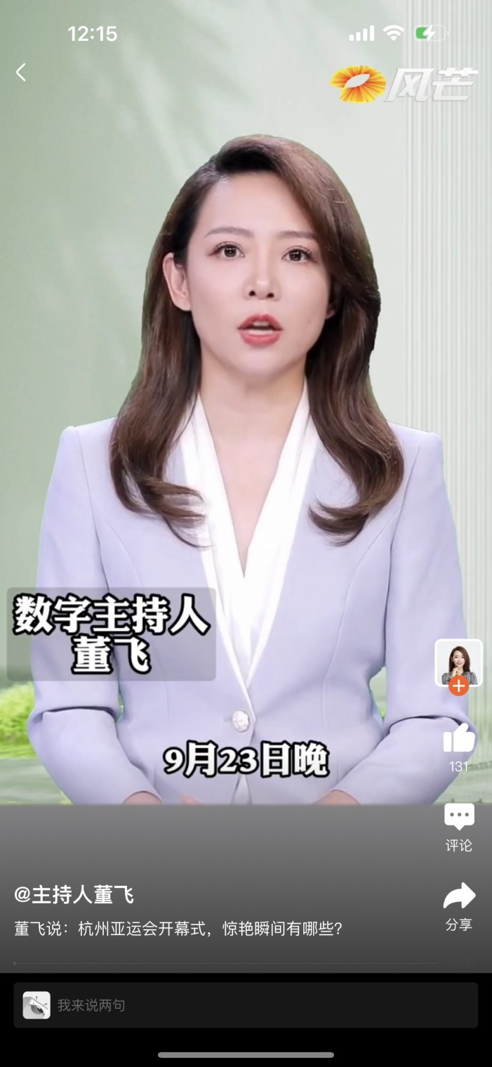 《小漾來學(xué)二十大》首期上線,緊接著,AIGC短視頻《當(dāng)雷鋒遇見雷鋒》于2023年3月4日上線,數(shù)字主持人董飛8月21日上線,風(fēng)芒逐夢“智”媒體,探索無限可能。