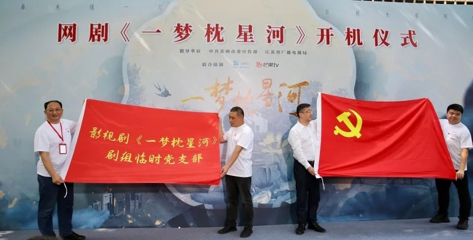 《一夢枕星河》總導演潘越和主創(chuàng)團隊驚喜亮相,與現(xiàn)場觀眾進行了精彩互動。黨旗飄揚,催人奮進。為發(fā)揮好黨支部戰(zhàn)斗堡壘作用和黨員先鋒模范作用,經(jīng)批準,劇組成立了臨時黨支部。開機現(xiàn)場,蘇州廣電傳媒集團(總臺)黨委副書記、總編輯郭昌雄;芒果超媒副總經(jīng)理,芒果TV副總裁羅澤軍向劇組臨時黨支部代表進行授旗。