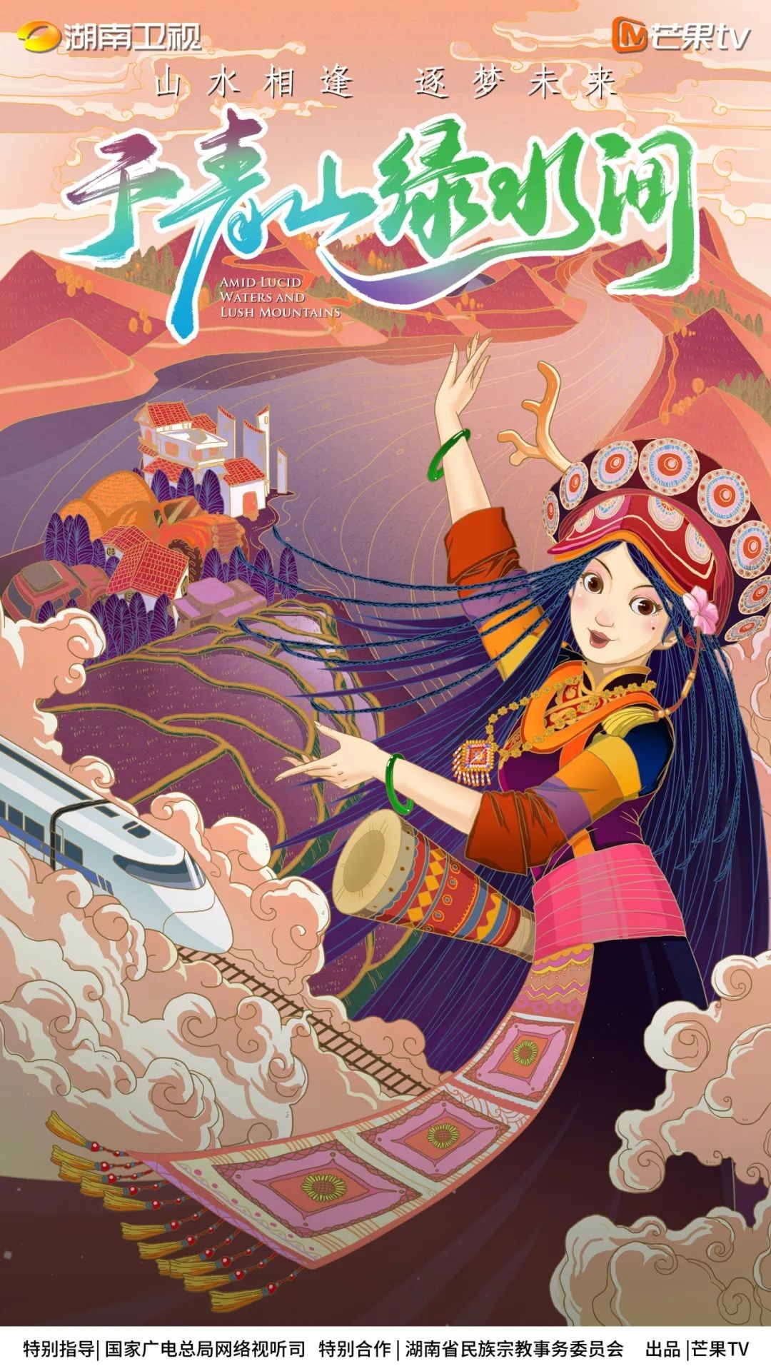 《于青山綠水間》是由國家廣電總局網(wǎng)絡(luò)視聽節(jié)目管理司特別指導(dǎo),湖南省民族宗教事務(wù)委員會特別合作,芒果 TV出品的紀錄片。該片在深入開展學習貫徹習近平新時代中國特色社會主義思想主題教育的大背景下,秉持“鑄牢中華民族共同體意識”的主旨,記錄了瑤族、東鄉(xiāng)族、土族、納西族、鄂倫春族、羌族、傣族、維吾爾族8個少數(shù)民族同胞在黨的領(lǐng)導(dǎo)下因地制宜建設(shè)家鄉(xiāng)的故事,講述了“接地氣、有溫度”的鄉(xiāng)村振興發(fā)展新圖景。