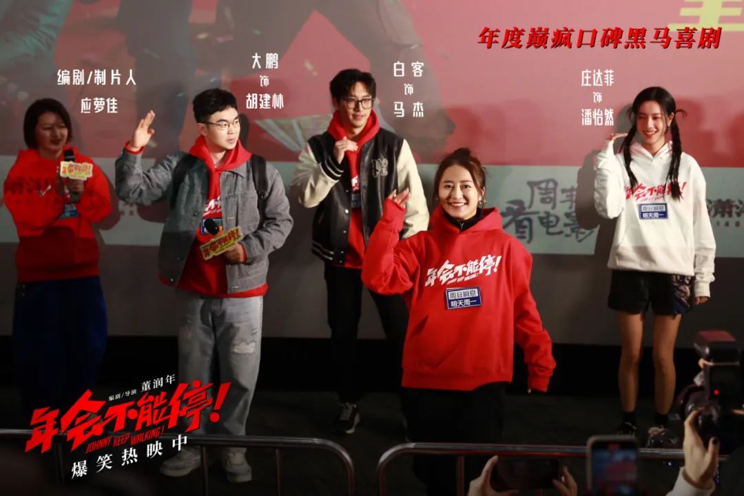 由瀟湘電影集團(tuán)聯(lián)合出品的跨年爆笑喜劇電影《年會(huì)不能停!》發(fā)布“向2024爆笑進(jìn)發(fā)”海報(bào),進(jìn)擊的打工人笑著卸下一年的疲憊,神采飛揚(yáng)地向前跨越,不僅寓意新的一年升職加薪邁向人生巔峰,也傳達(dá)出把糟心事統(tǒng)統(tǒng)拋在身后,帶著好心情邁進(jìn)2024年的美好祝福。12月31日,編劇兼導(dǎo)演董潤(rùn)年,編劇兼制片人應(yīng)蘿佳,演員大鵬、白客、莊達(dá)菲、王迅、孫藝洲、李乃文出席長(zhǎng)沙路演活動(dòng),與當(dāng)?shù)赜^眾展開(kāi)歡樂(lè)交流,此行重返電影拍攝地,也讓主創(chuàng)們頗為興奮。年度最高分喜劇,正在爆笑熱映中。
