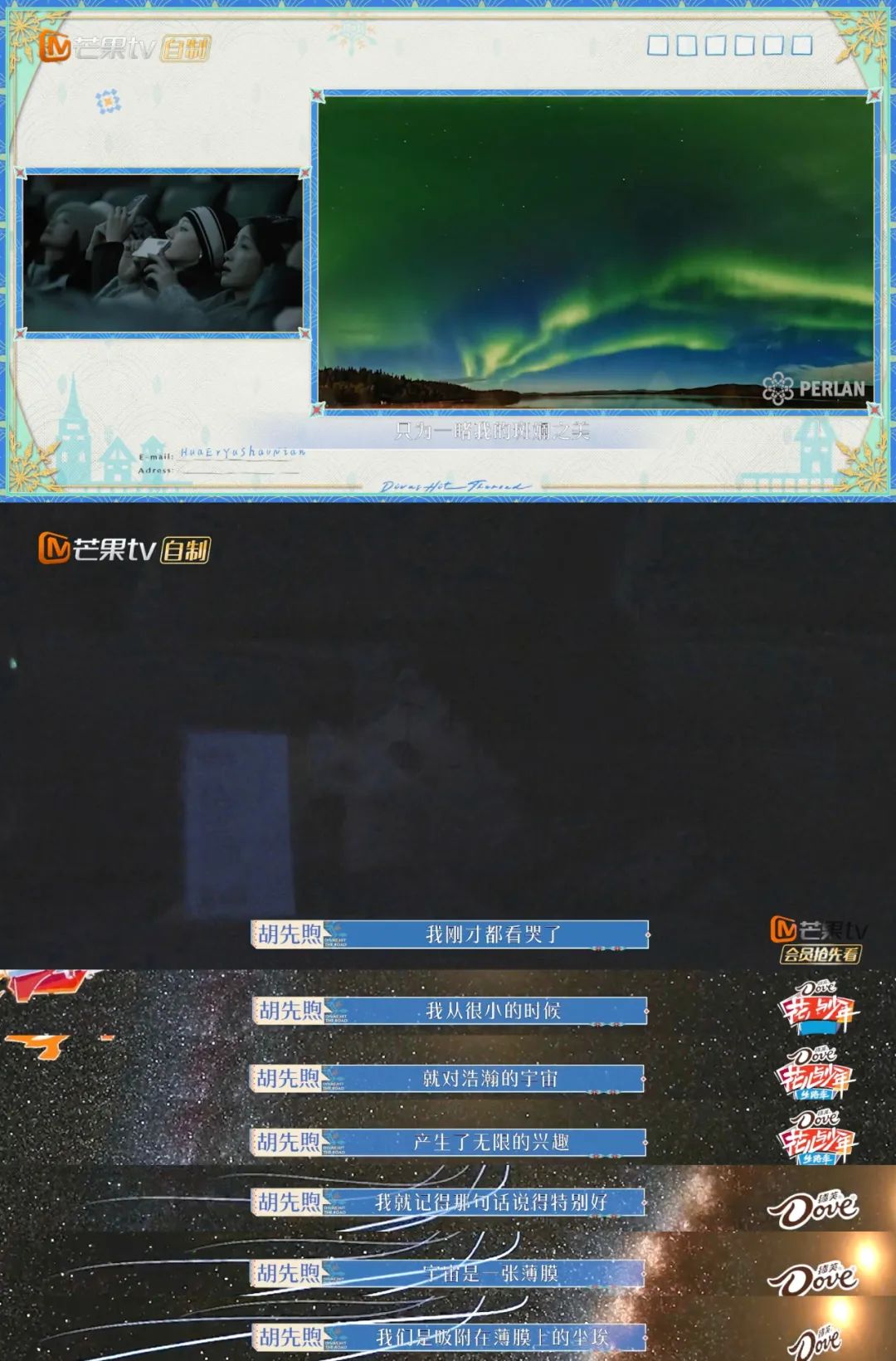 花少團(tuán)還來到天文館欣賞極光秀這段介紹極光故事的視頻讓花少團(tuán)體會到了自然的力量從小就對宇宙感興趣的胡先煦投入地看哭了